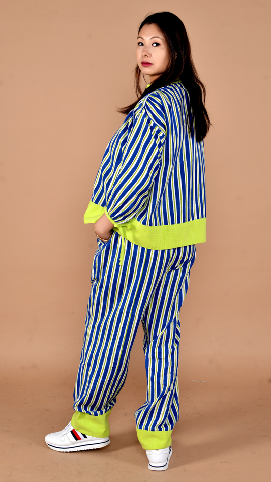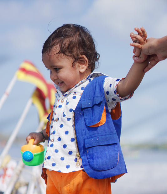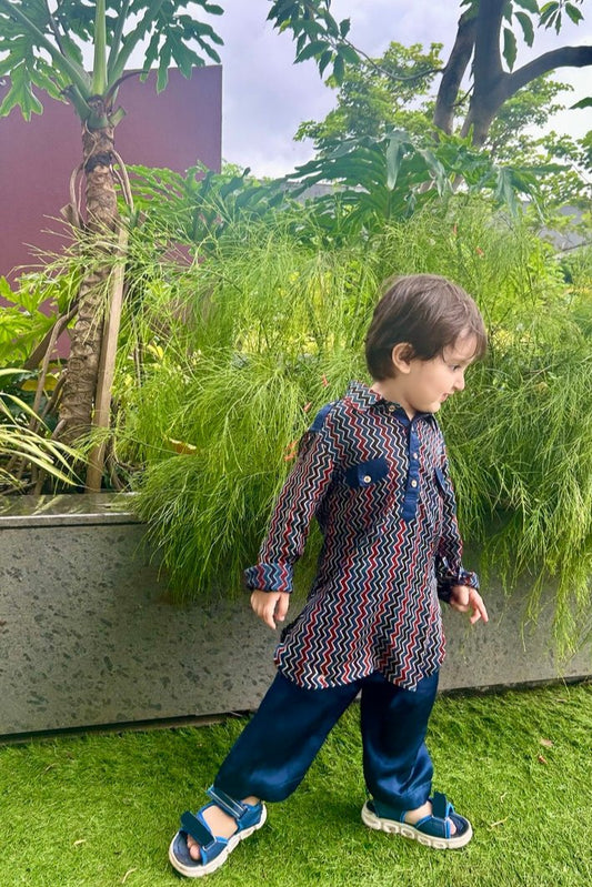 Boy's Kurta Pathani Set in Hand Block print & Pure Silk |Blue