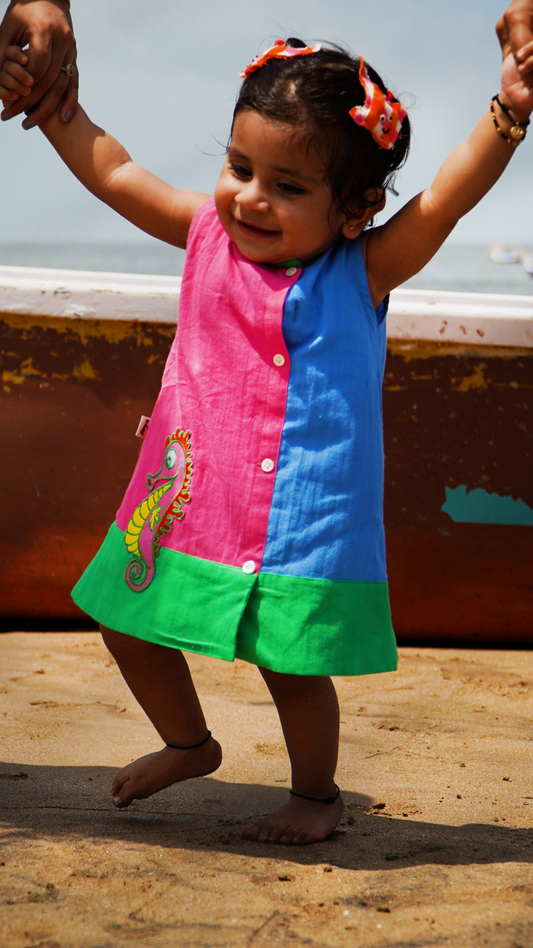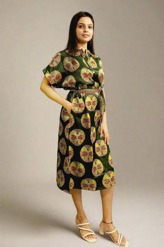 Boy's Kurta Set in Hand Block print & Pure Silk |Green