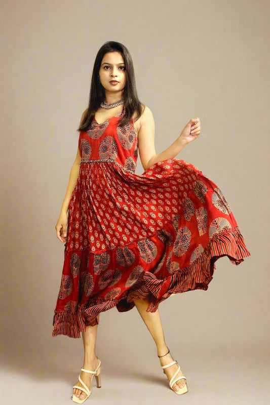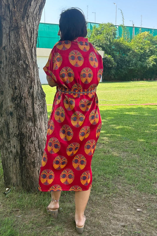 Boy's Dhoti Kurta Set in Hand Block print & Pure Silk |Red