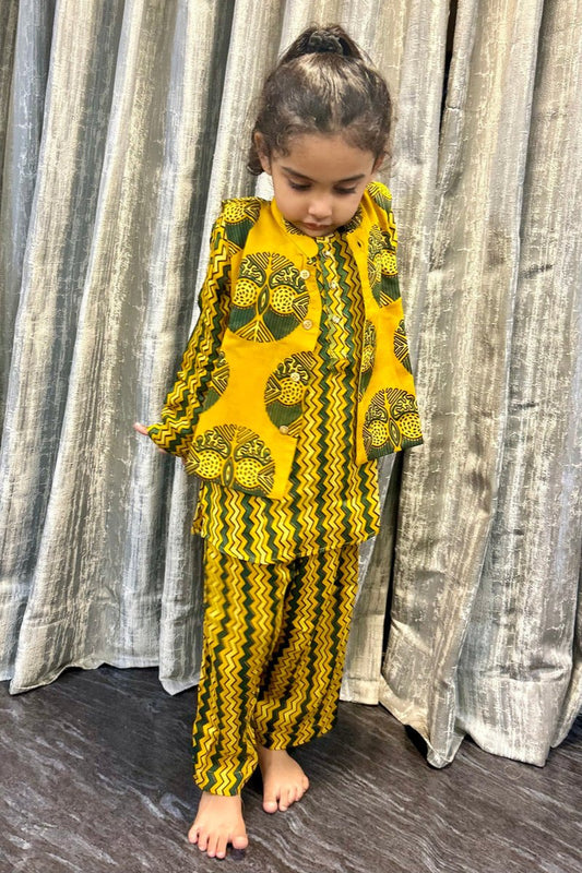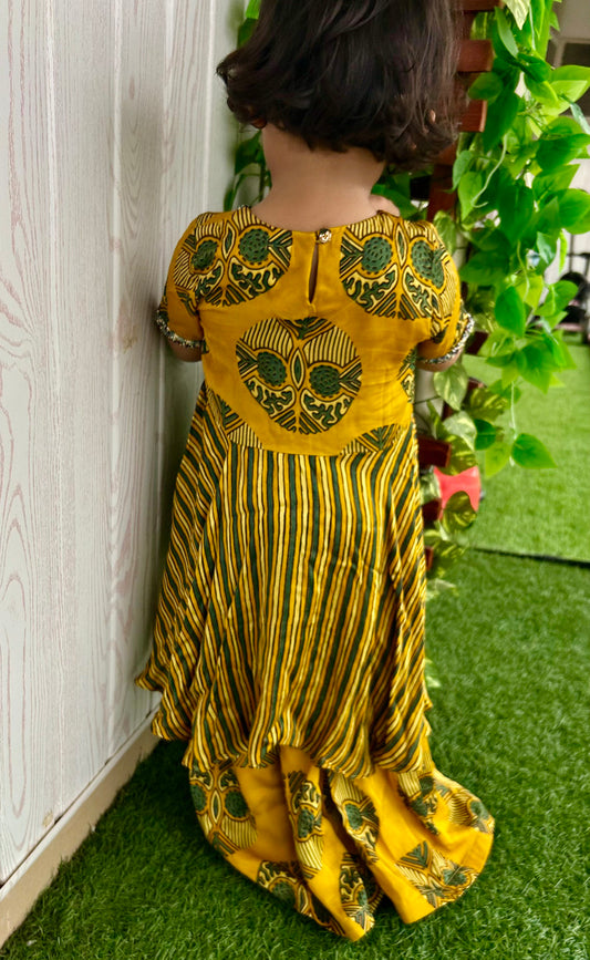 Girls's Shara Set in Hand Block print & Pure Silk |Yellow