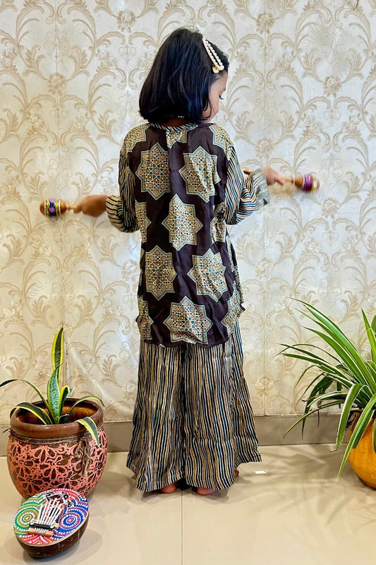 Girls's Kurta Set in Hand Block print & Pure Silk |Brown