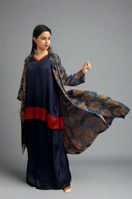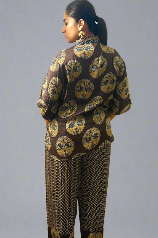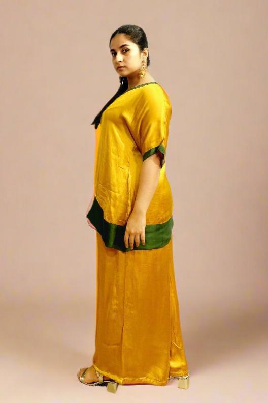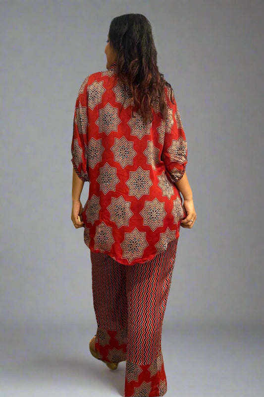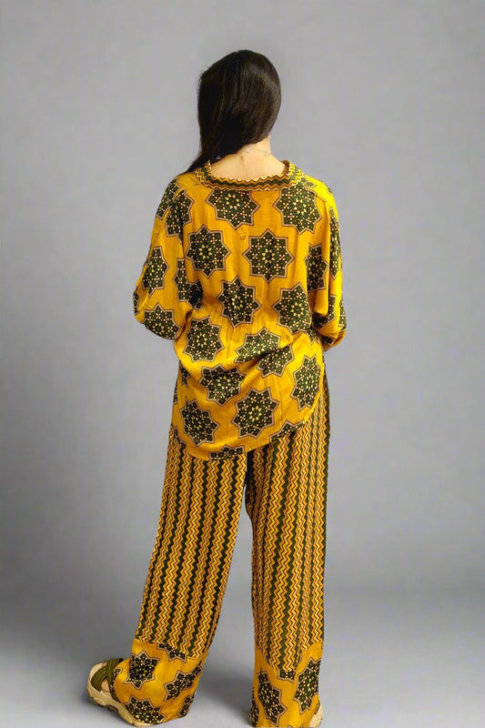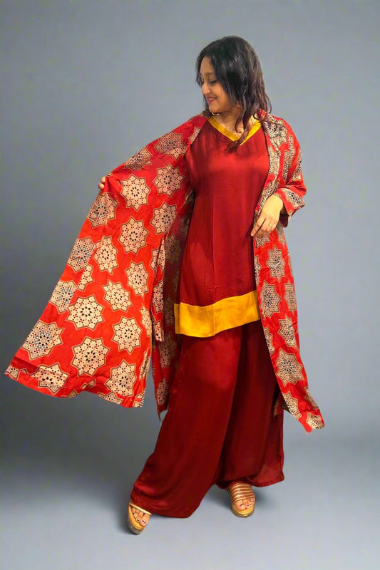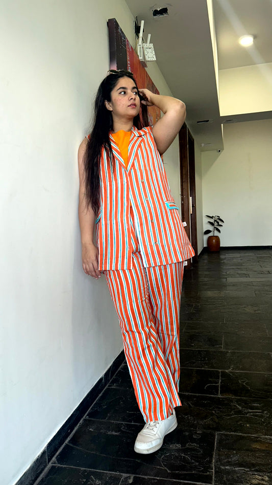 FAREHA Orange Stripe Print 3 pc Co-Ord Set