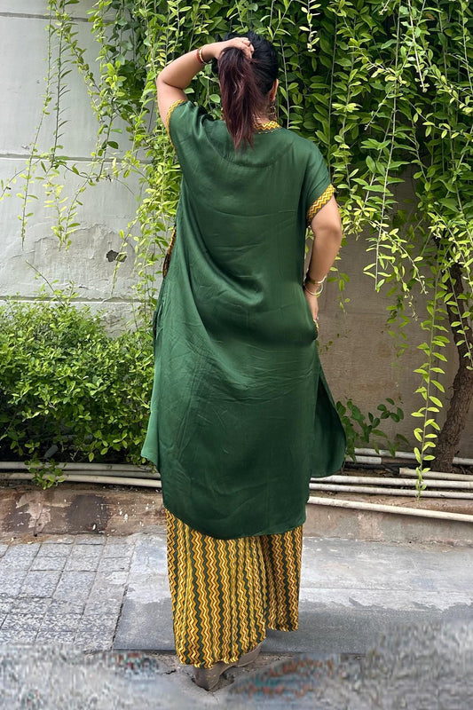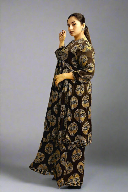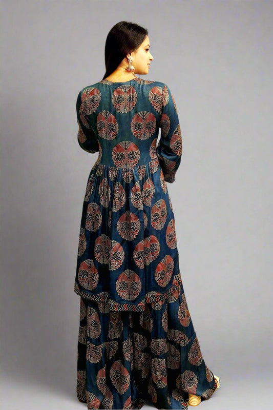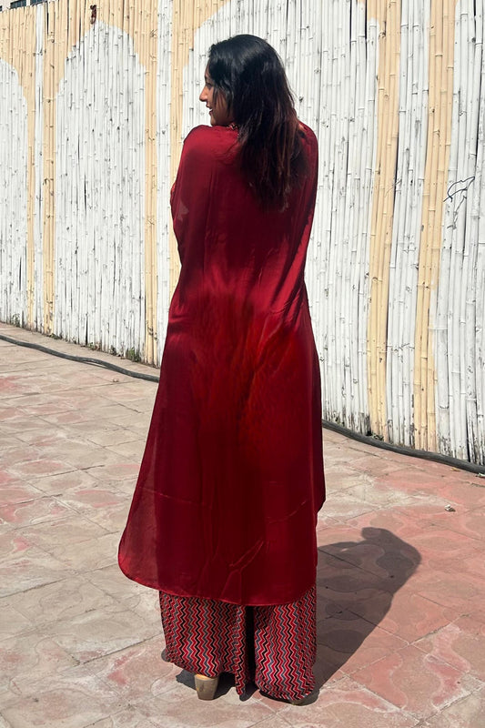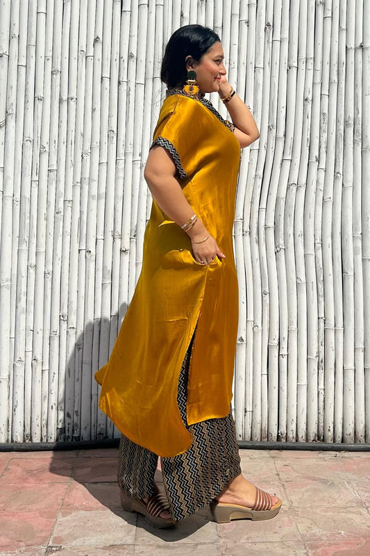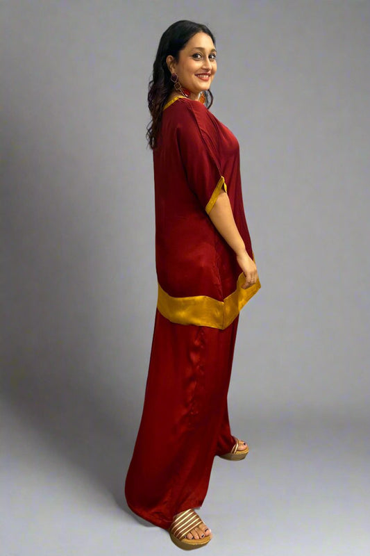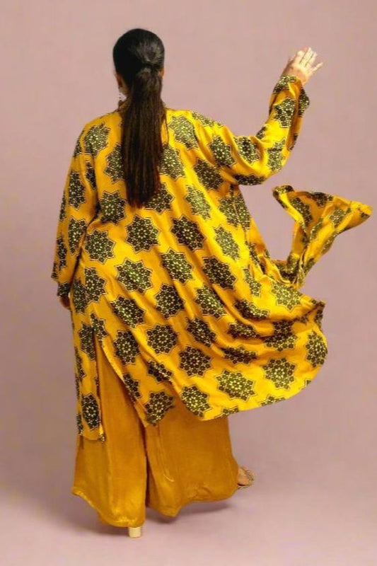 FAREHA Orange Stripe Print 3 pc Co-Ord Set